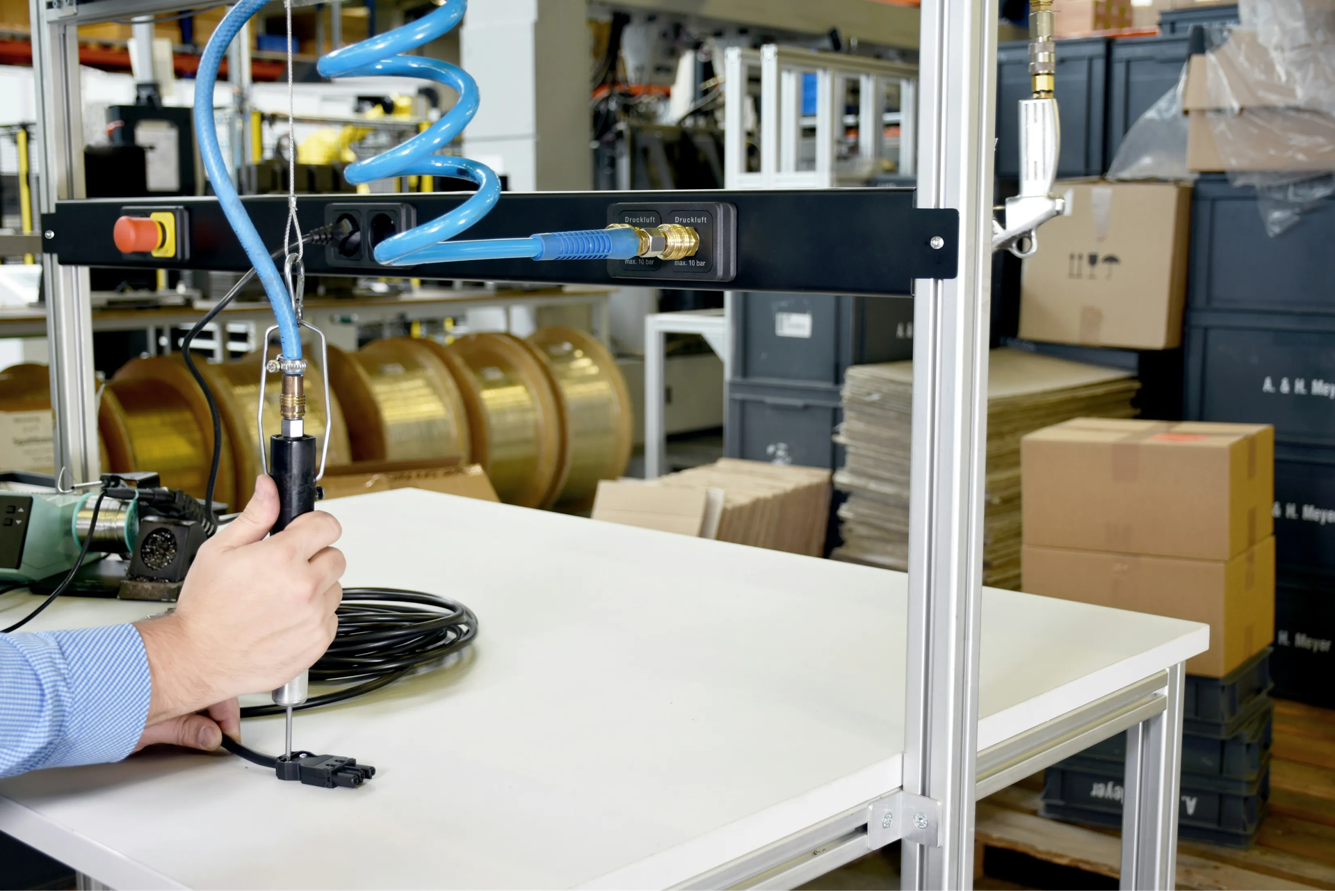 - During quality control, measurements from a tool go directly to the production order - no manual entry needed.