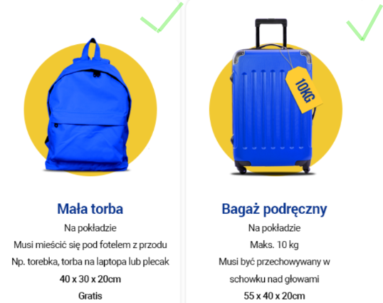 • Luggage:  For each person: 10 kg of hand luggage and standard small bag
